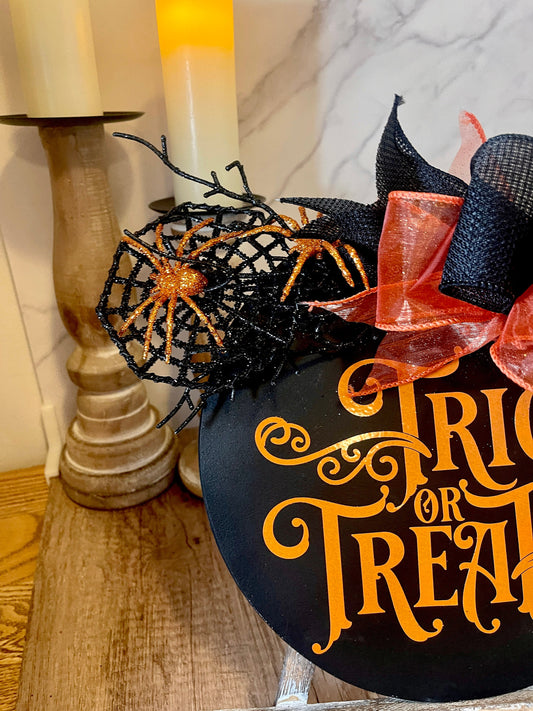 Trick or Treat Halloween Sign Halloween Wreath Halloween Front Door Hanger Halloween Front Porch Sign Halloween Front Door Decor Halloween